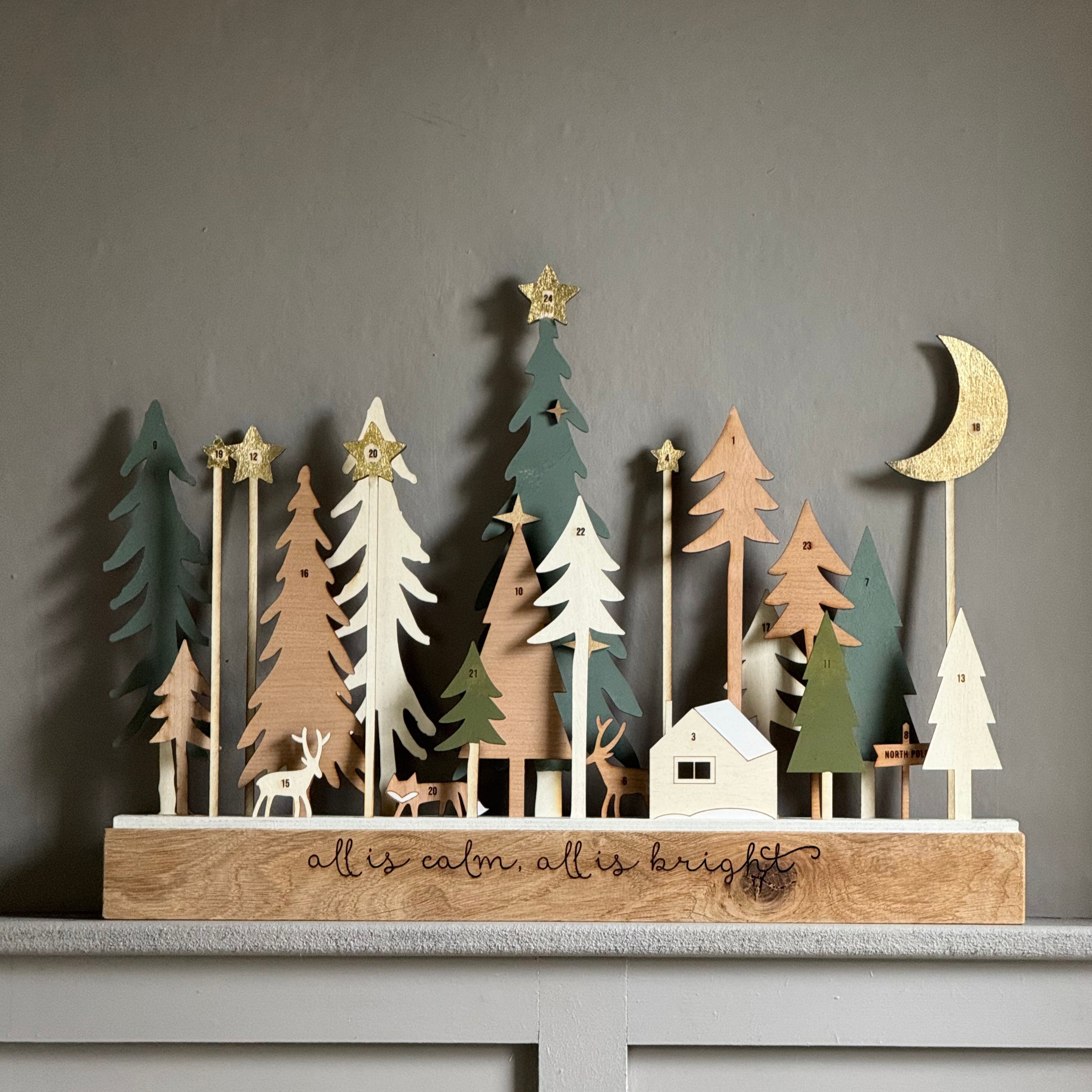 Modo Winter Forest Wooden Advent Calendar - full set & base please / yes please is backordered and will ship as soon as it is back in stock.