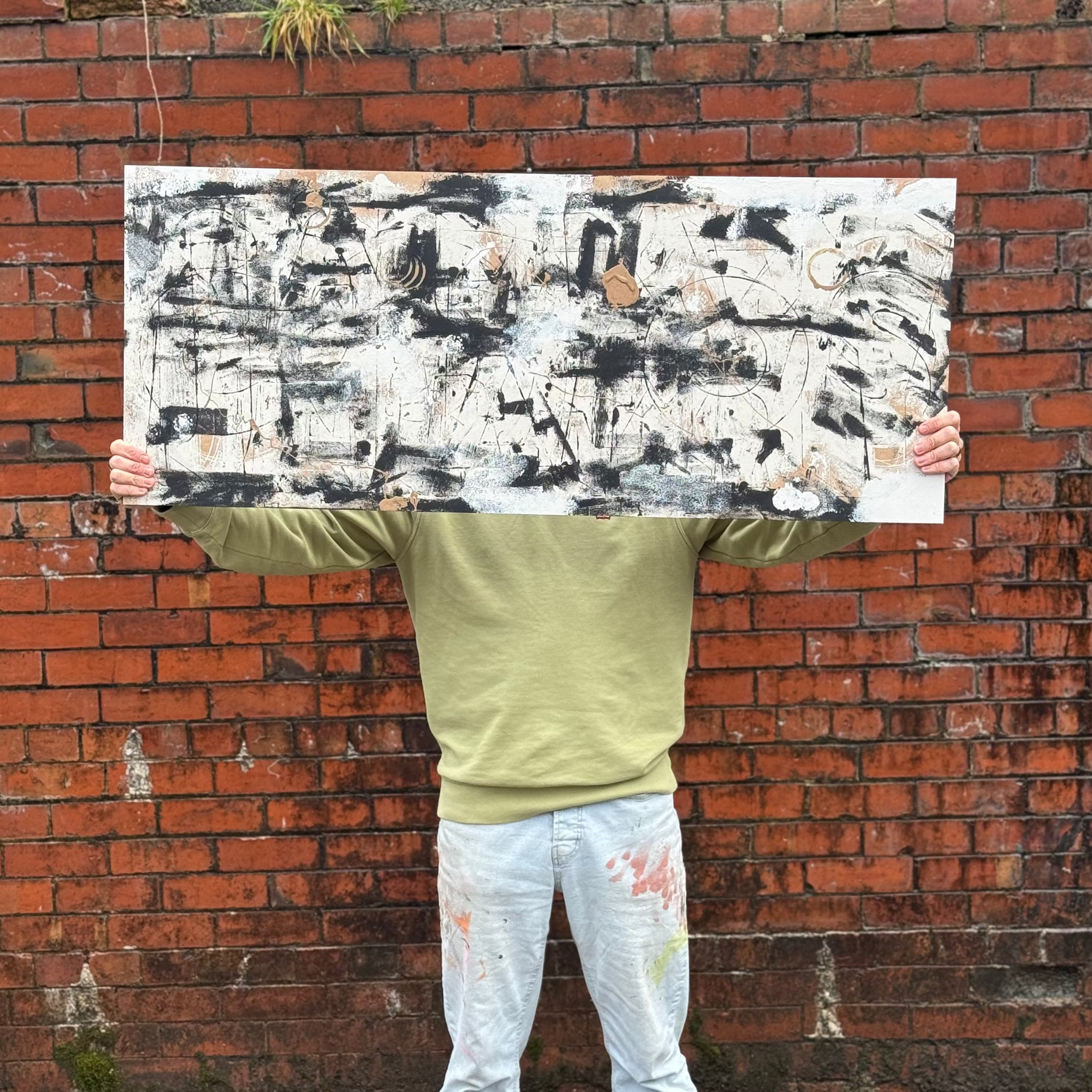 Totally individual, this is a section of the boards we use to paint on and over time creates this unique patina.