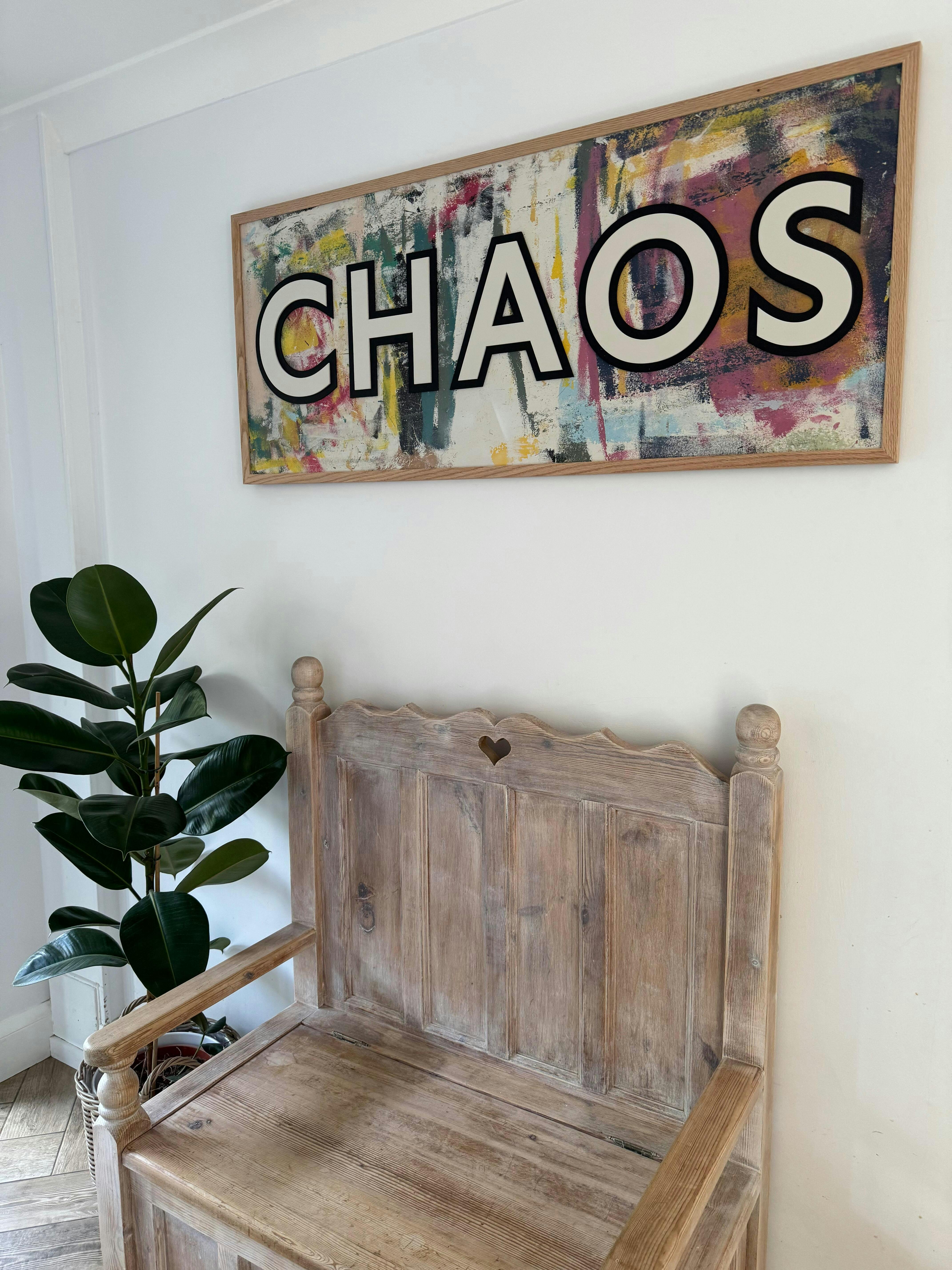 Large sign on one off painted backboard, framed in an oak frame. Waiting for you to choose your word and font style.