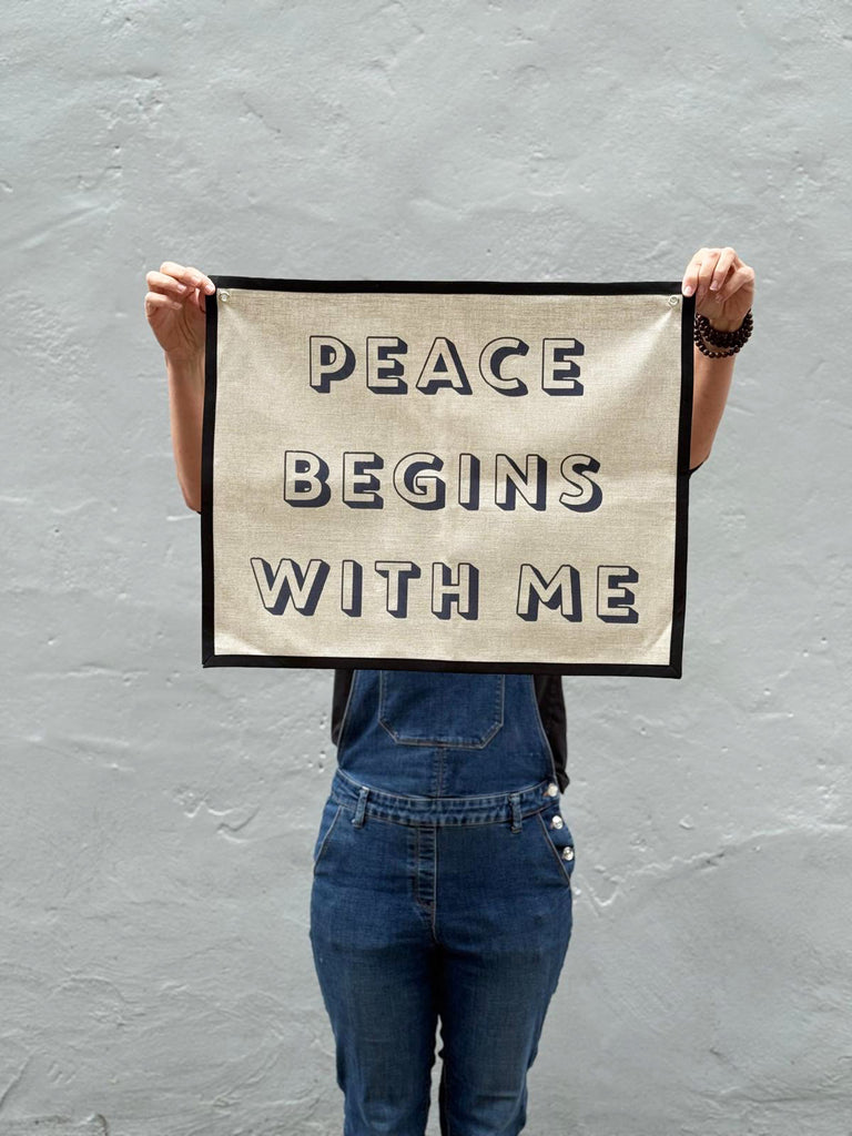 Fabric Quote Wall Hanging Banner - parchment white / mustard / portrait is backordered and will ship as soon as it is back in stock.